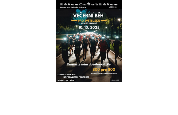 Večerní běh pro Světlušku v Hradci Králové6. 10. 2025 – V pátek 10. října můžete znovu podpořit lidi se zrakovým postižením a zároveň získat parádní zážitek. V Hradci Králové...