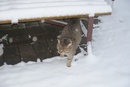A padá a padá. Podívejte se na tu krásnou zimní atmosféru. I naše asociační kočka Micka se díví, kolik sněhu to napadlo.